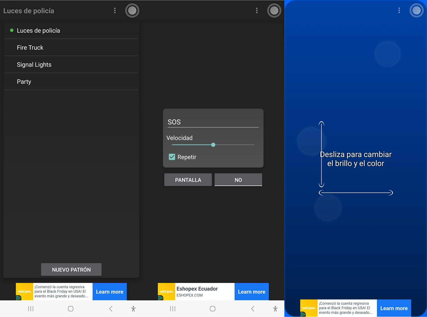 Esta aplicación también sirve para controlar el encendido y apagado del flash led en celulares que sí cuentan con uno. Igualmente a este flash se le puede controlar el encendido y apagado y crear patrones de iluminación tipo clave morse o SOS. Combina esto con la activación del flash usando el botón de encendido con apps de remapeo de botones tipo Clicklight y tienes una potente herramienta para generar señales luminosas.