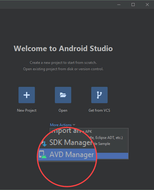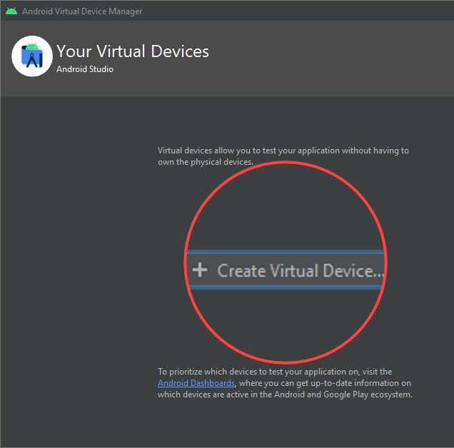 - Tras finalizar el paso anterior se abrirá Android Studio. Desde la opción AVD Manager podrás crear un nuevo dispositivo virtual. Escoge entre múltiples dispositivos de Google, como Pixel o Nexus.