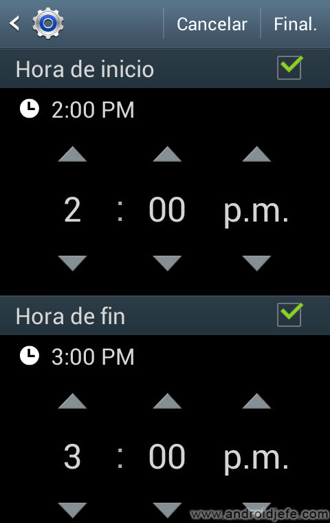 En este caso, la hora de inicio y fin corresponde a la hora en la que el WiFi se encenderá y apagará respectivamente. Si ambas están activadas, significa que el WiFi permanecerá activo en ese lapso de tiempo y fuera de ese horario se apagará. Si solo activas la casilla de inicio, se encenderá siempre a esa hora. Si activas sólo la casilla de fin, la WiFi se apagará siempre que llegue esa hora.