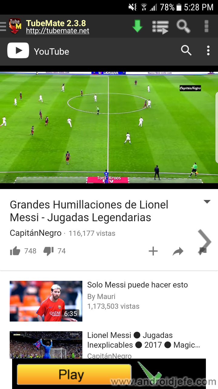 Desafortunadamente, Tubemate no puede reproducir en segundo plano o con la pantalla apagada. Si presionas el botón inicio o apagas la pantalla, la reproducción se detiene, tal y como sucede con la aplicación de YouTube original.