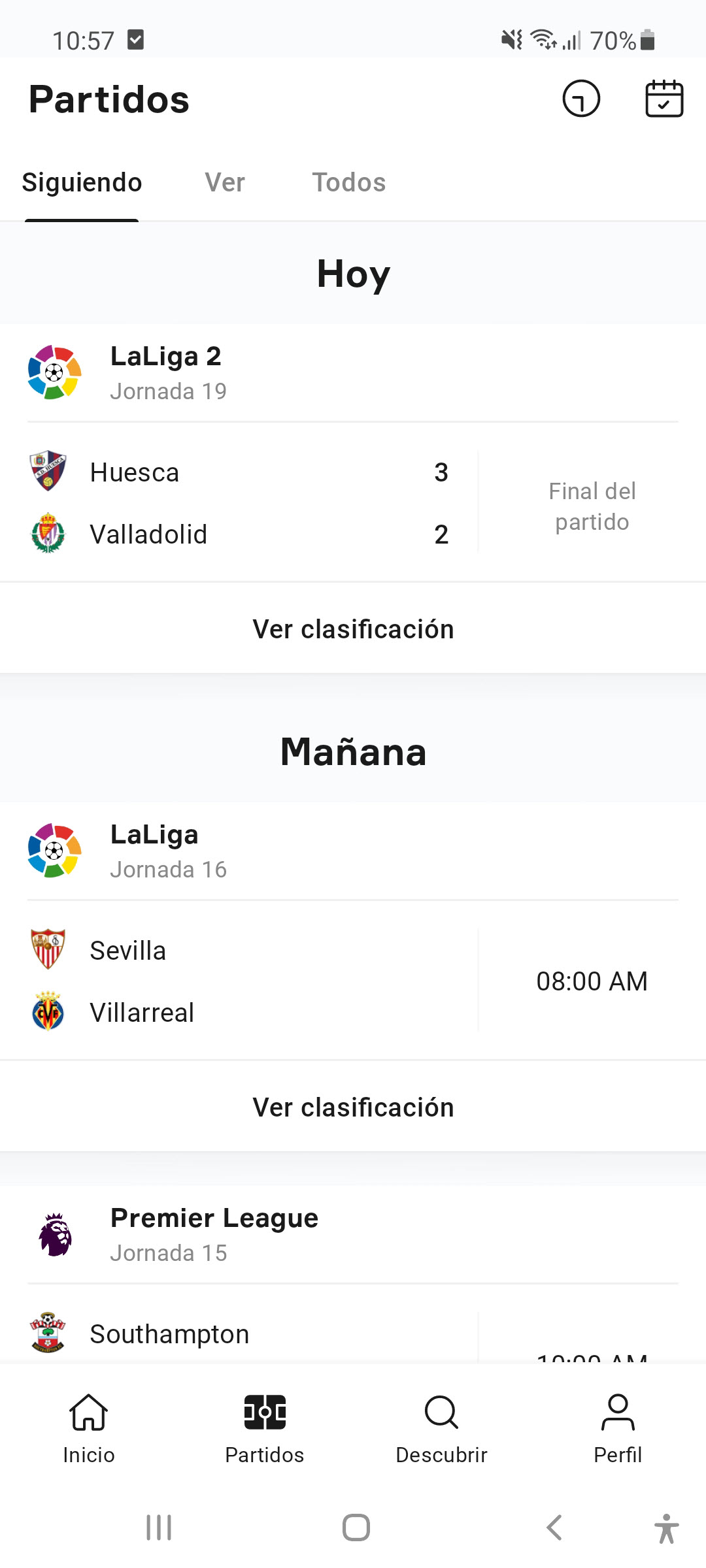 Si te pierdes con todos los menúes, pestañas y opciones que ofrecen las apps anteriores, ESPN FC (app oficial de ESPN) es mucho más limpia en este aspecto.