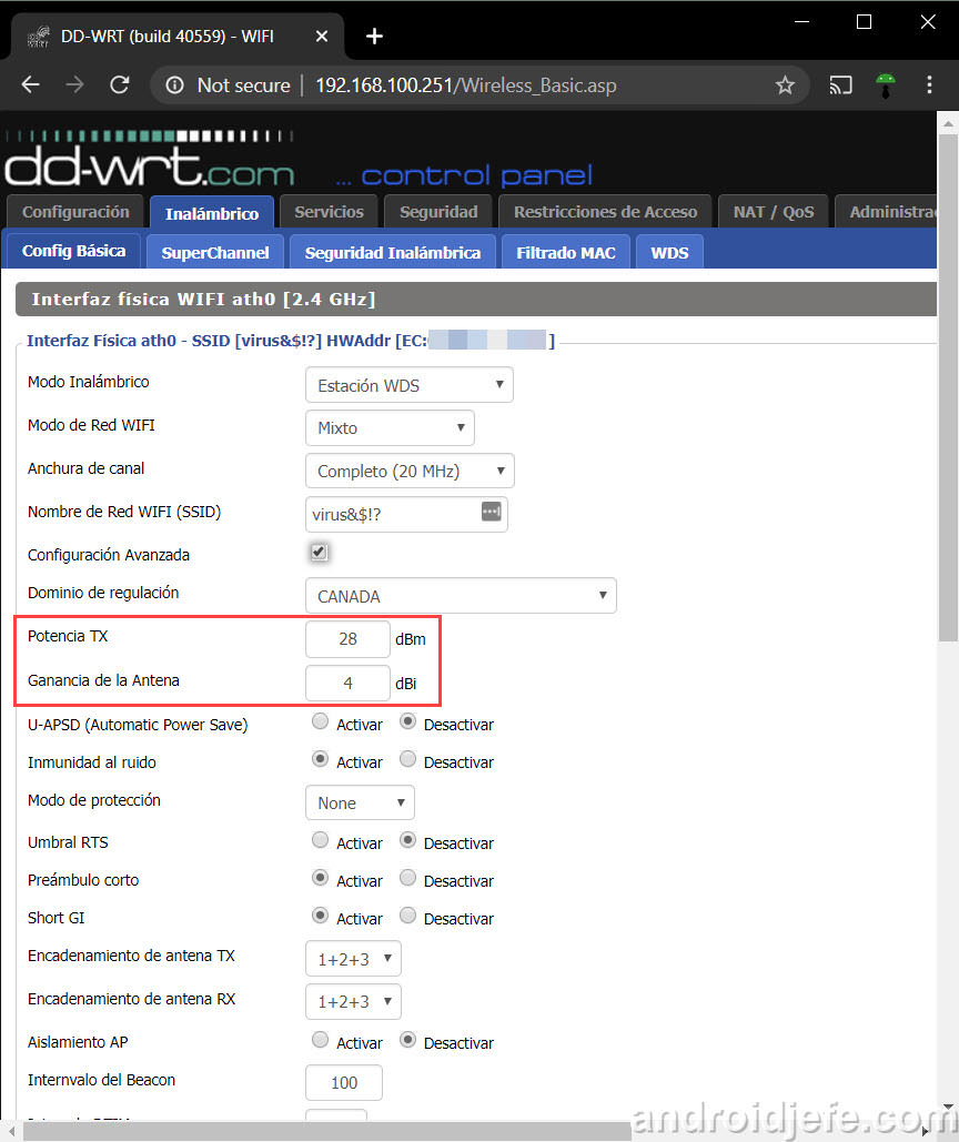Aumentar potencia y ganancia en DD-WRT