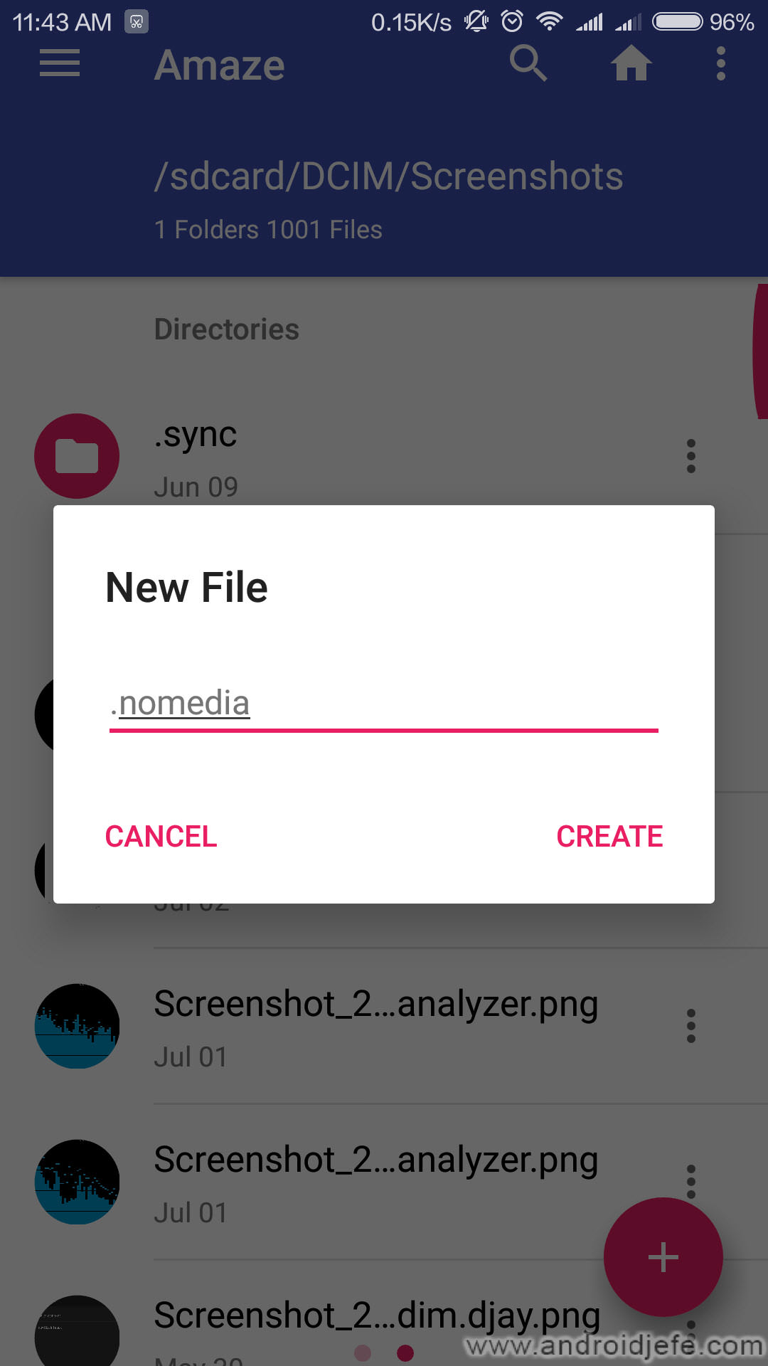 Para que esto no vuelve a suceder es necesario añadir un archivo .nomedia a las carpetas de imágenes y videos, el cual evitará que las aplicaciones como «Galería» escaneen los archivos dentro y generen los thumbnails.