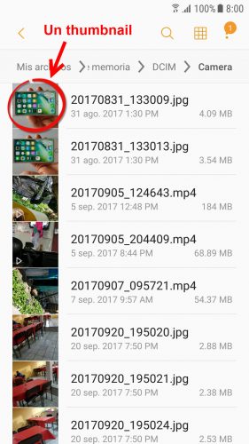 Los «thumbnails» básicamente son una copia de las fotos o imágenes en tu celular, pero en tamaño miniatura.