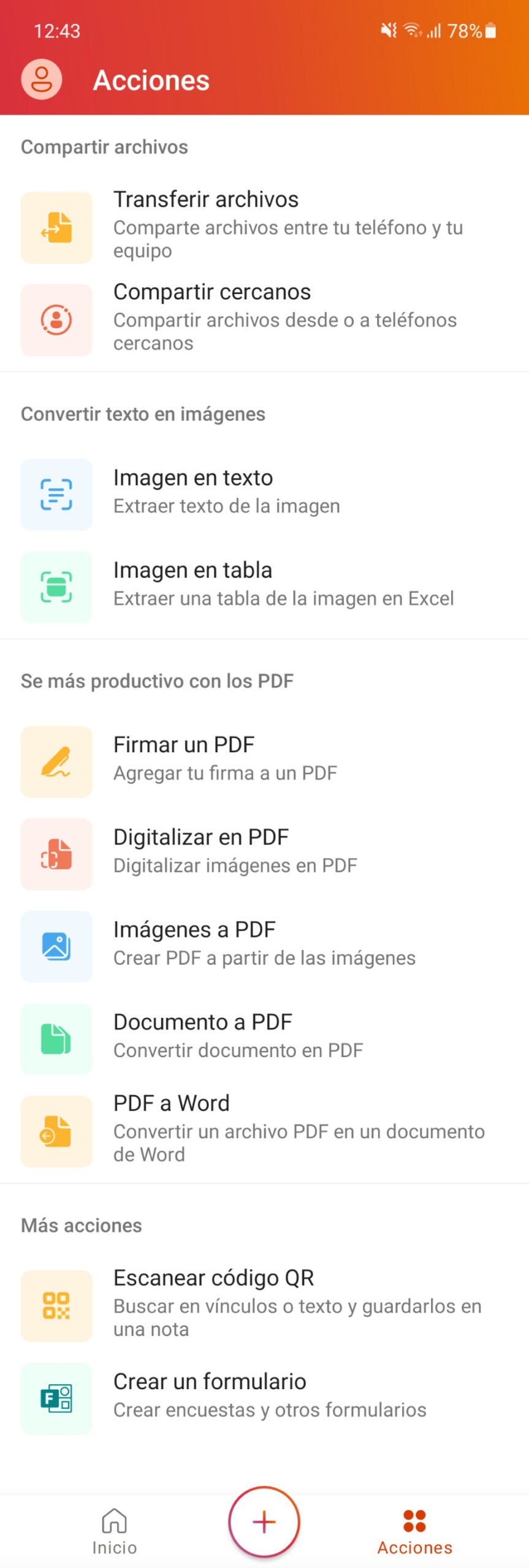 OCR, trabajar con PDF, transferir archivos, escanear códigos QR y más