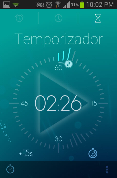 Reloj, Cronometro y Temporizador disponibles.