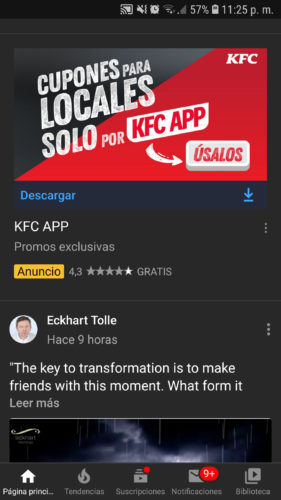Es básicamente un visualizador de la web móvil de YouTube, pero bloquea su publicidad, además de permitirte descargar los videos y la música. Sin embargo, tiene su propia publicidad la app, por lo que no es una experiencia tan limpia como en los casos anteriores.