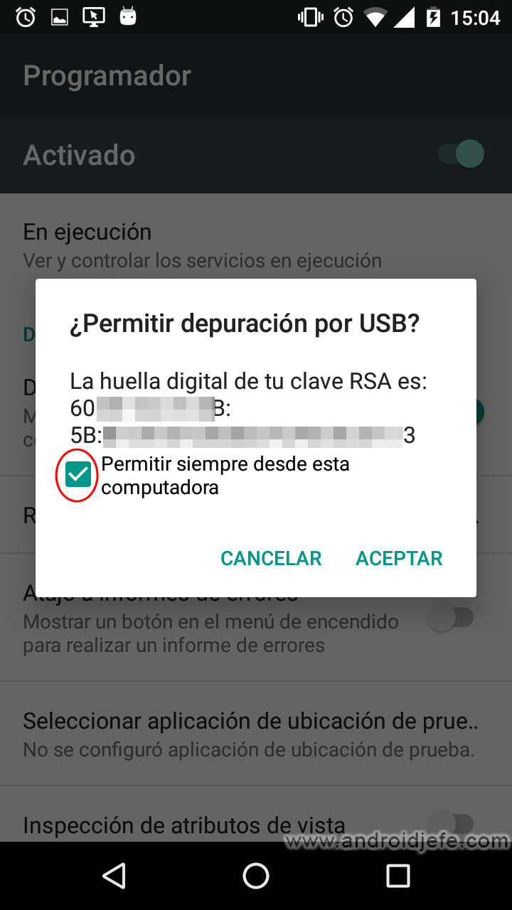 Cuando activas por primera vez la depuración USB en tu computadora, asegúrate de habilitar la opción «Permitir siempre desde esta computadora» para que no tengas que confirmar la depuración la próxima vez que te conectes al PC, algo que te sería imposible con una pantalla que no funciona.