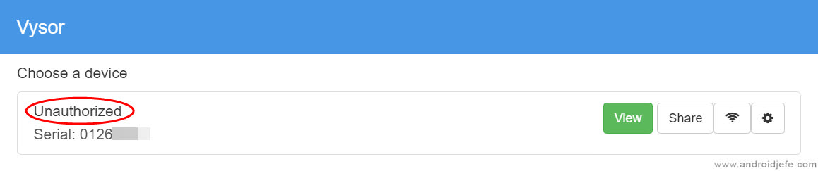 Suponiendo que sí hayas hecho aquello con anticipación, solo deberías valerte de un programa para controlar Android desde el PC como Vysor, SCRCPY, etc. para poder manipular la pantalla. En caso negativo, seguramente verás un aviso de «no autorizado» en el programa, como se puede ver abajo, y no podrás hacer algo.