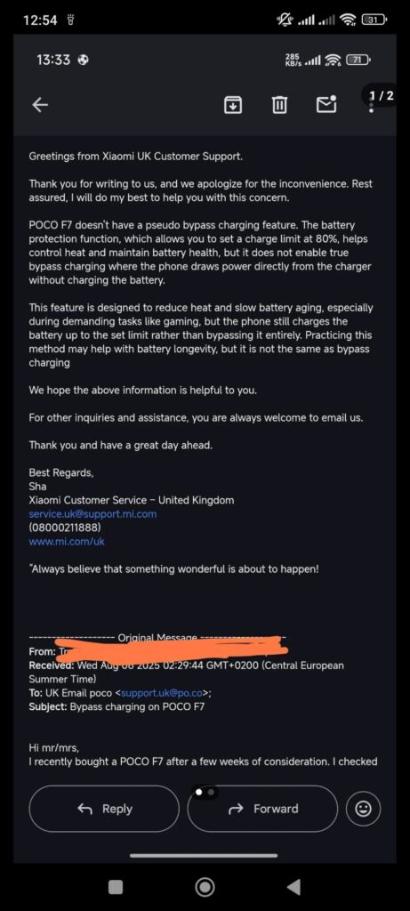 Puede deberse a que, como ya dije, en otros teléfonos una función depende de la otra. Algunos celulares Poco tienen una opción para limitar la carga de la batería al 80%. Pero en esta marca, esa opción no activa el bypass.