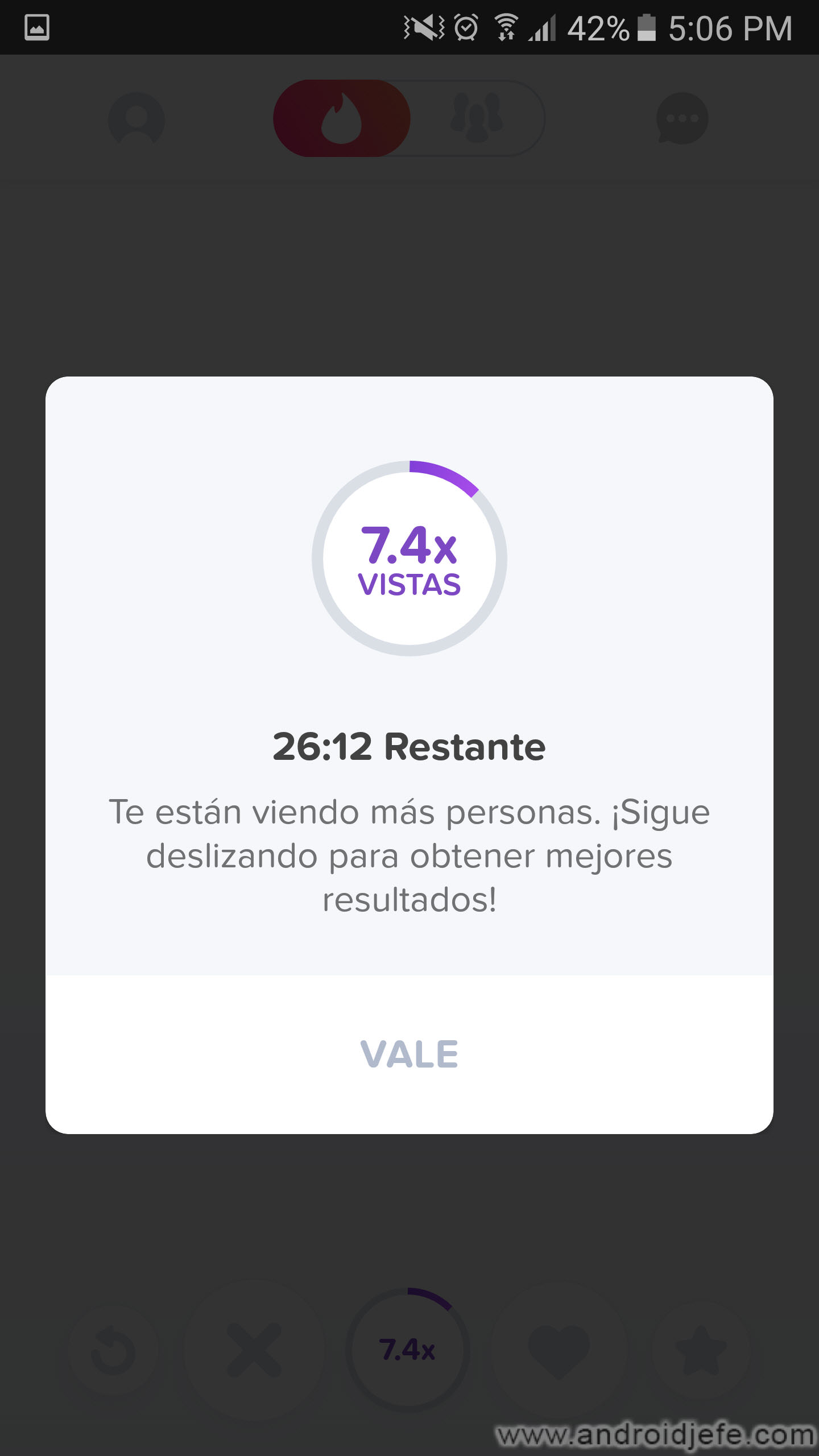 Nota sobre el boost: Si no aparecen personas durante un boost, se puede forzar su aparición cambiando el ajuste de ubicación a otro país. Luego de ver personas podrás regresar a tu país. También es recomendable cerrar y abrir la aplicación. Para evitar esta situación es recomendable no haber deslizado personas durante al menos un día antes de activar el boost.
