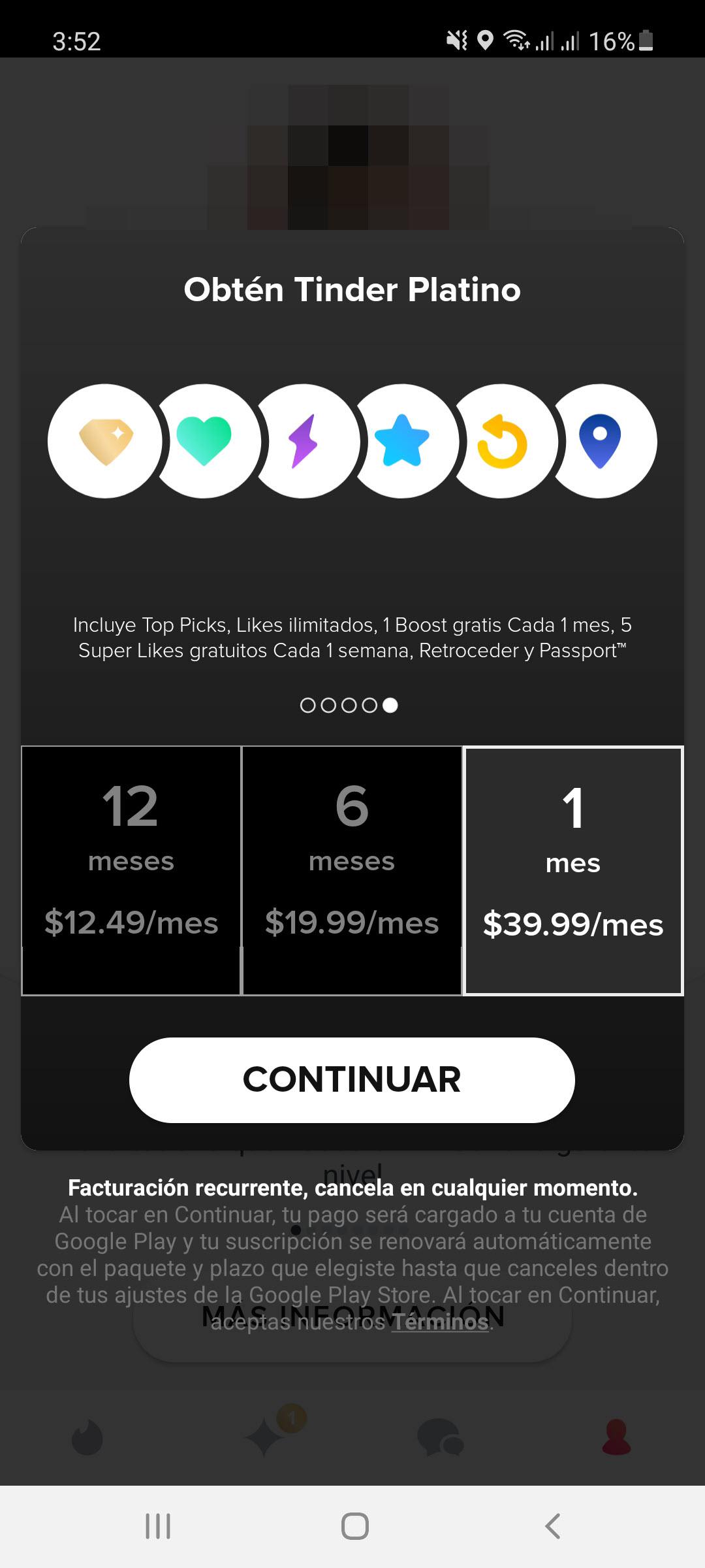La característica de pago más importante en Tinder