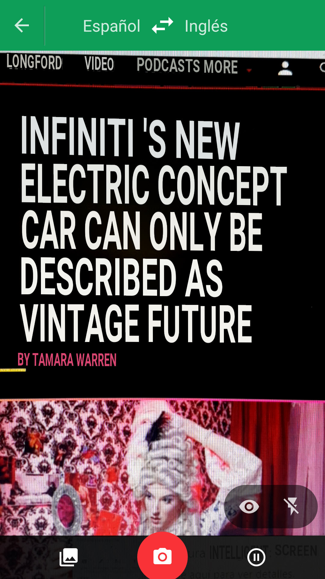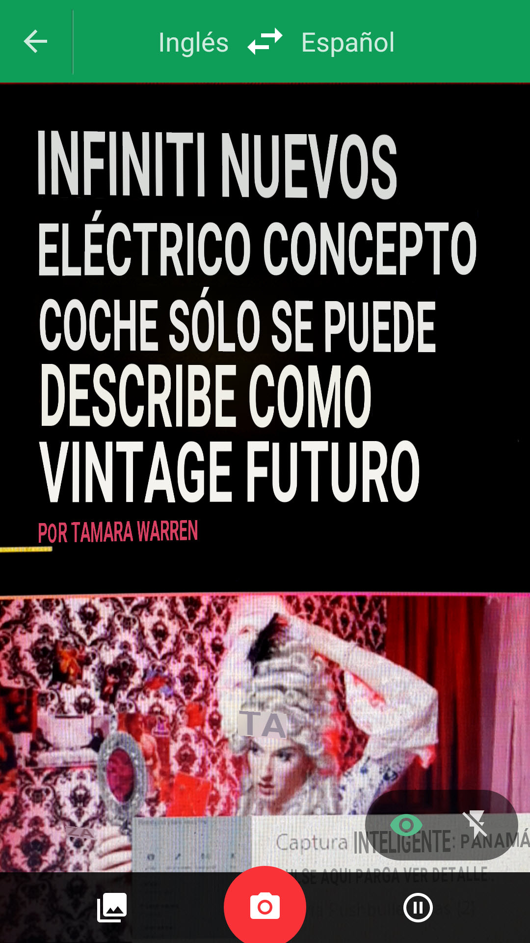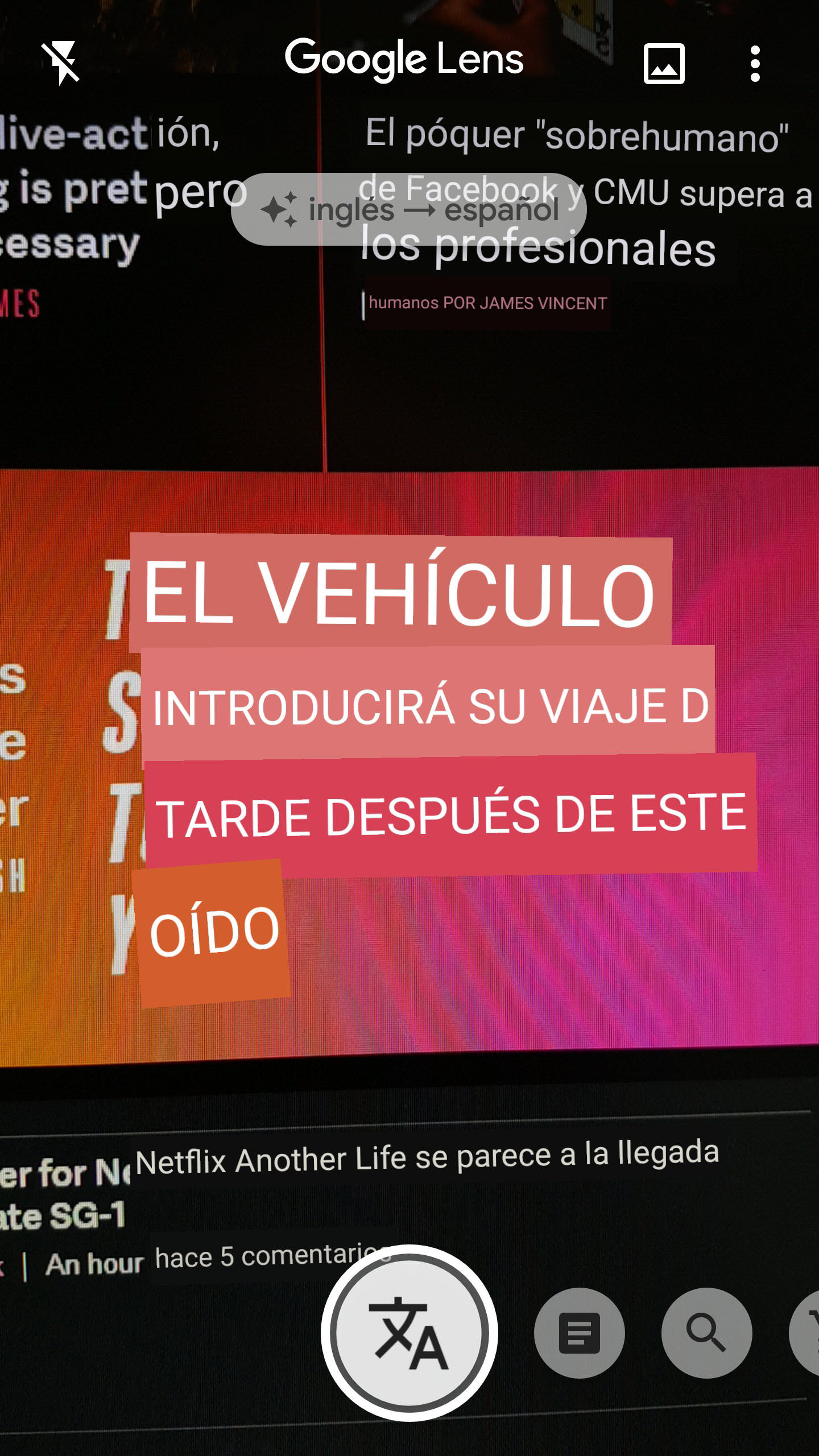 4. Finalmente, en la pantalla de cámara toca el botón de «Traducción» y enfoca la imagen. Si no funciona, verifica que el idioma de destino sea el correcto.