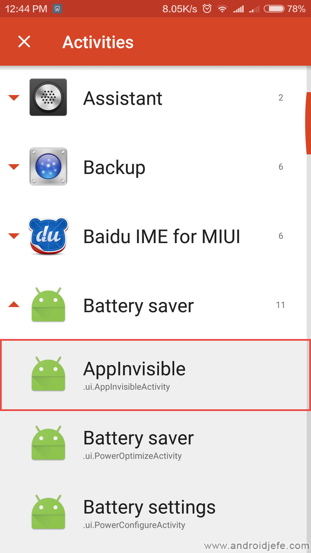 - Se abrirá un sublistado: tocar en la opción «AppInvisible». Al hacerlo, esta opción se añadirá como un icono más a la pantalla de inicio.