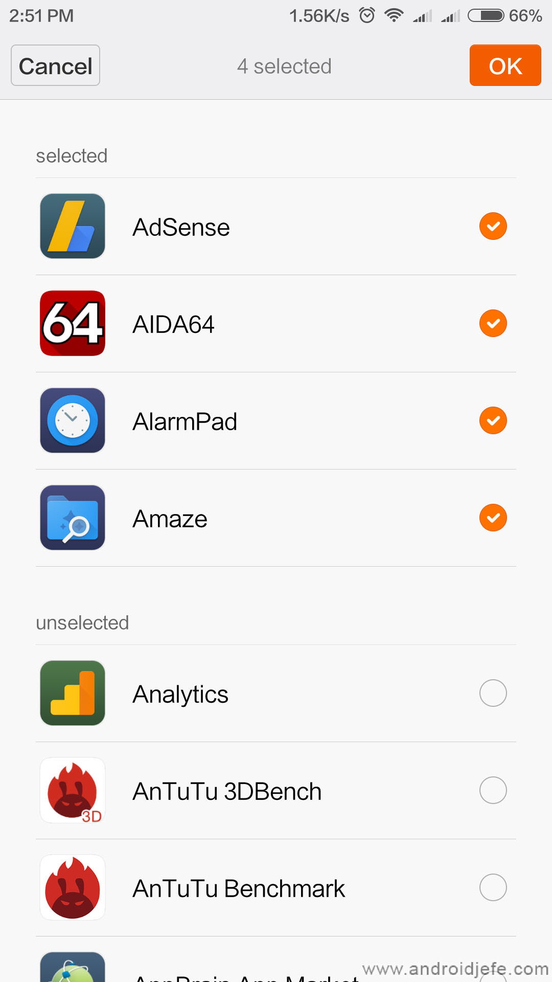 Para volver a activar aplicaciones hay que hacer algo parecido a lo del paso 6, solo que en este caso habrá que desmarcar las aplicaciones que se desean volver a habilitar y tocar en el botón OK para guardar los cambios.